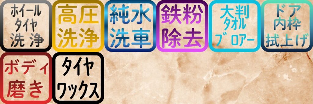 ※鉄粉除去については通常洗車、徹底洗車にオプションとして追加可能です。